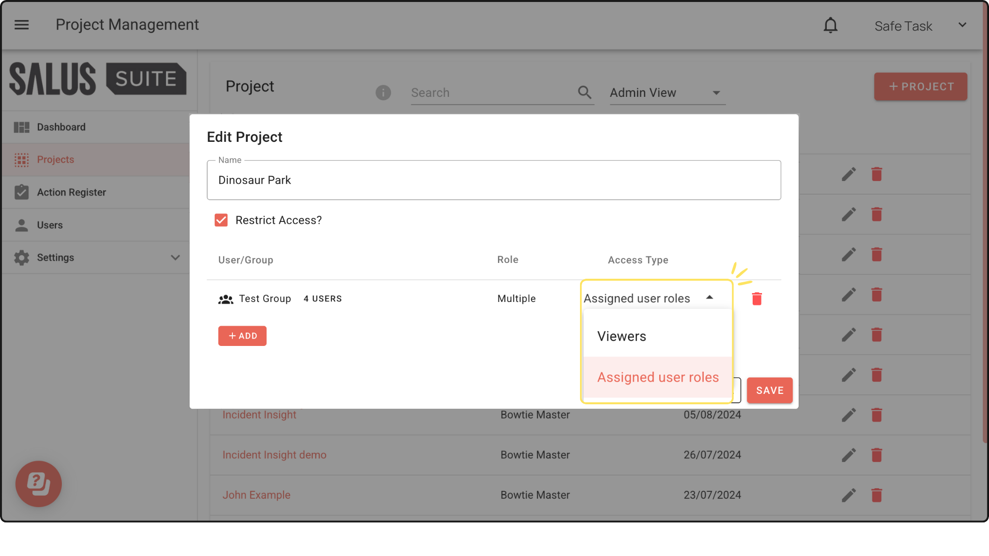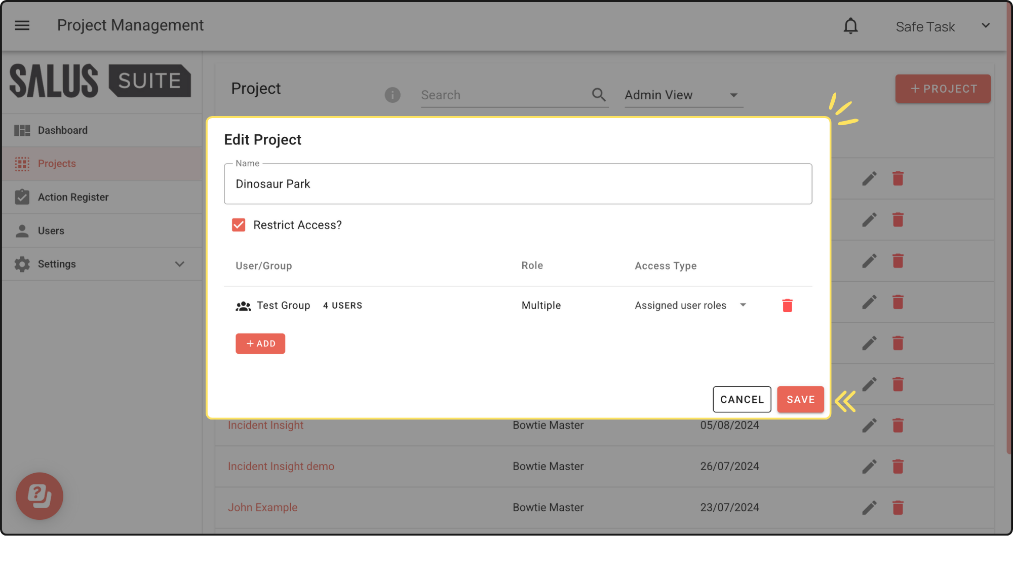 Step 5: In the pop-up, select the Group/s you wish to restrict the project to. Click Add #.