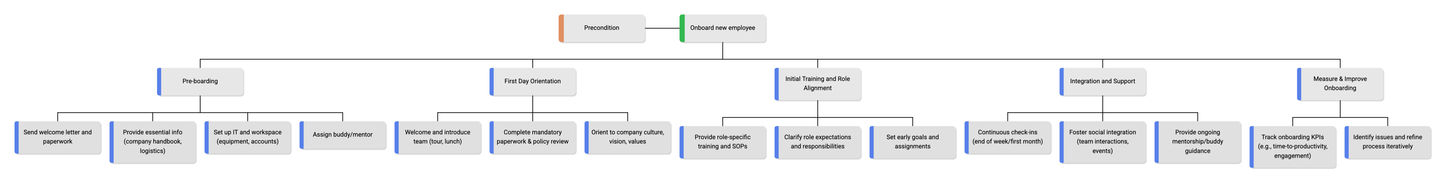 Hierarchical Task Analysis (HTA) is a natural fit for training and onboarding employees, such as walking a new technician through equipment start-up or guiding a team member on how to complete a maintenance check. As it breaks down a job into clear tasks and subtasks, HTA mirrors the way many people learn best: one step at a time. Large amounts of new information may not be well received in a single training session or document. HTA allows for a structured task logic, displaying clear tasks broken down into manageable actions.